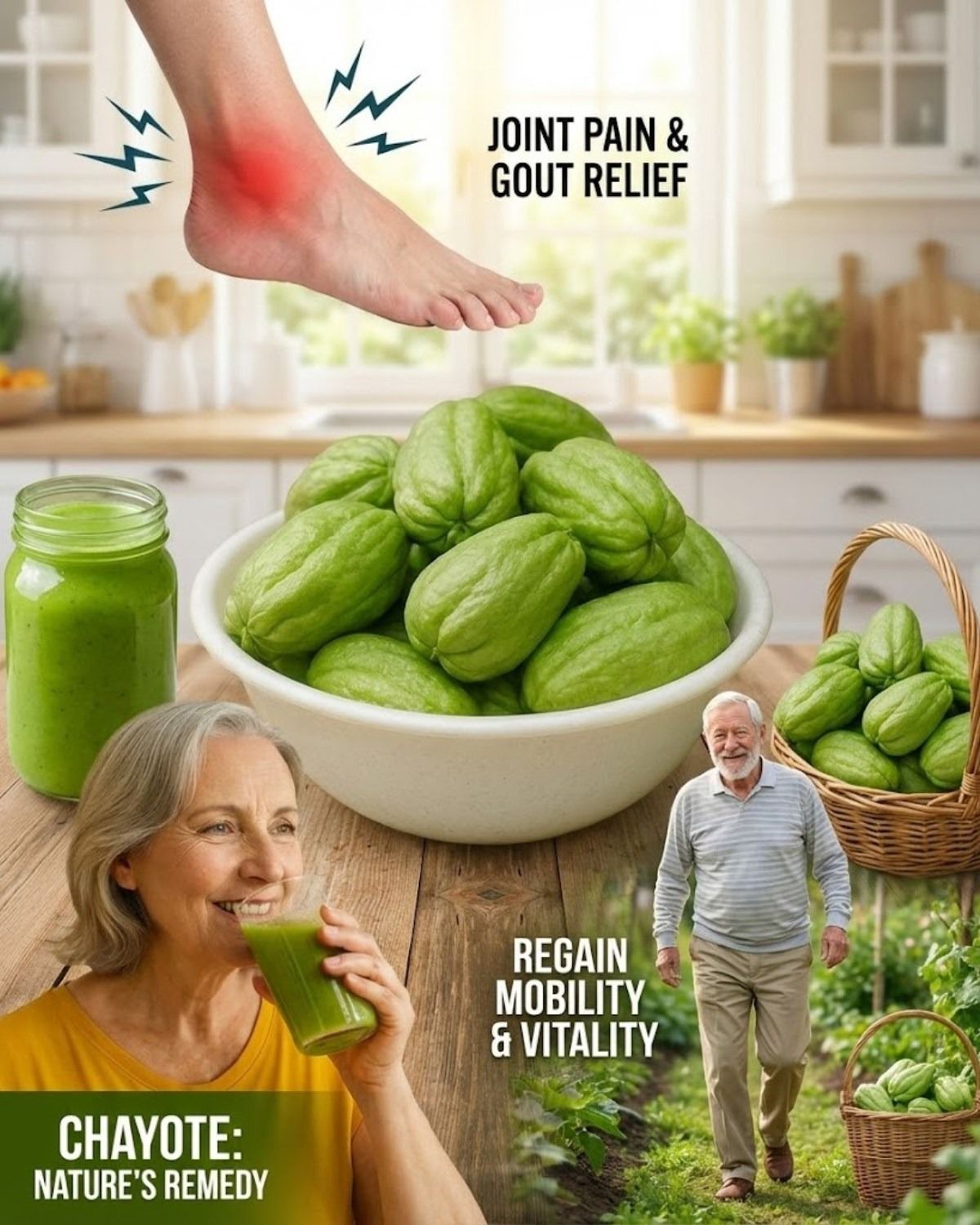 Chayote is rich in antioxidants and vitamin C, which help fight oxidative stress in the body. Chronic inflammation can contribute to joint discomfort, especially in the knees.